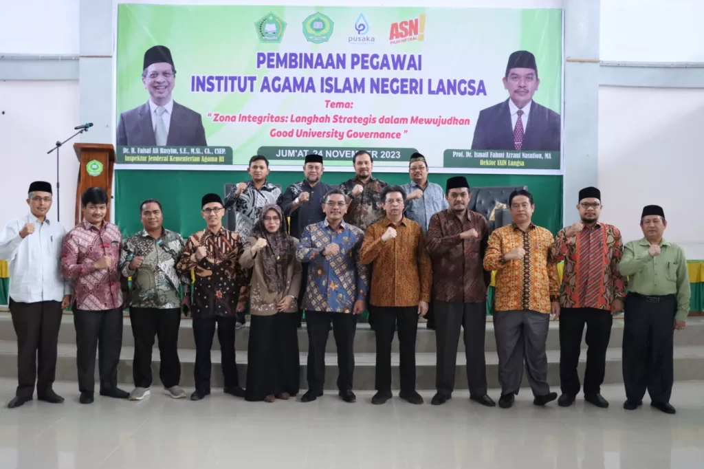 HARI ini (24 November 2023), dikampus IAIN Langsa diselenggarakan acara PEMBINAAN PEGAWAI IAIN Langsa, tema yang diusung ” Zona Integritas : Langkah Strategis dalam mewujudkan Good University Governance”. ACARA ini menghadirkan Inspektur Jenderal Kementerian Agama Republik Indonesia Bapak Dr. H. Faisal Ali Hasyim, SE, M.Si, CA, CSEP. Alhamdulillah, SAYA (Dekan) berkesempatan hadir, dan suatu kehormatan dapat bertemu dan foto bareng bersama Irjend Kemenag RI, dan Rektor IAIN Langsa.