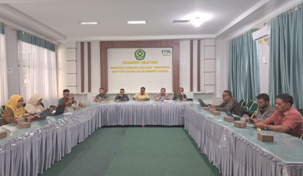 Rapat persiapan PPL FTIK diadakan di ruang rapat Chamber Meeting, yang dihadiri oleh seluruh pejabat FTIK IAIN Langsa, 24 Juli 2024.