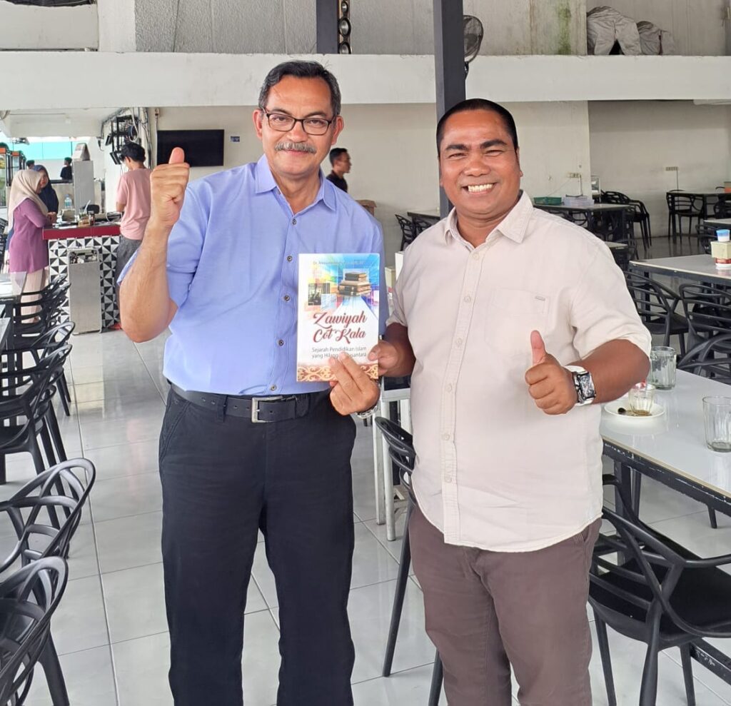 Azzawiy.id – pagi ini menjelang Zhuhur, saya bertemu dengan Dosen UNIMAL (Universitas Malikussaleh), Lhokseumawe Dr.Ir.Jamidi, MP. Pada Pertemuan tersebut, SAYA menghadiahkan buku “Zawiyah Cot Kala”.