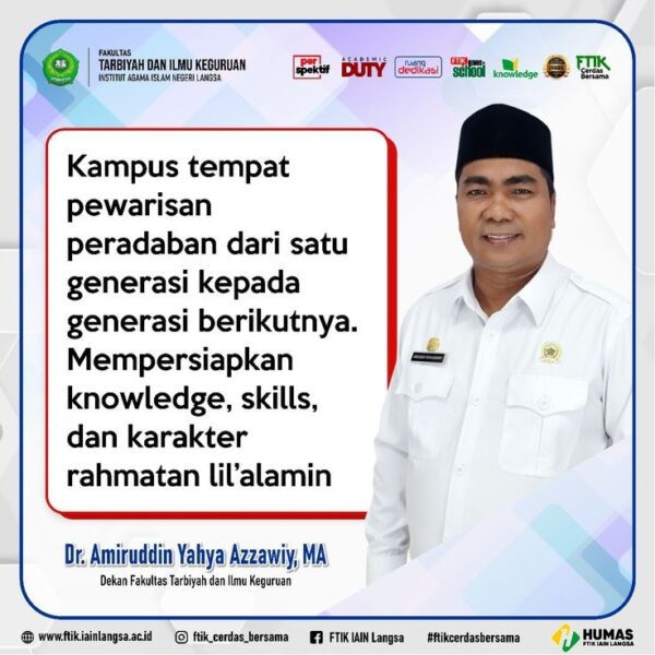 Kampus tempat pewarisan peradaban, dari satu generasi kepada generasi berikutnya. Mempersiapkan knowledge, skills dan karakter rahmatan lil’alamin