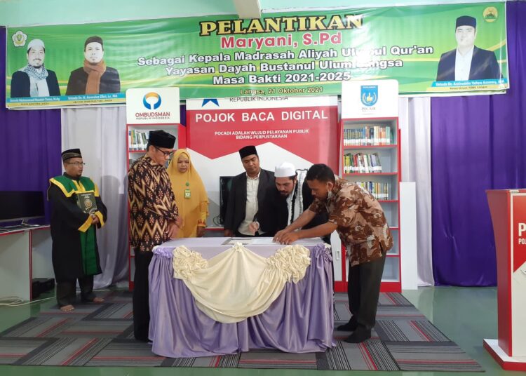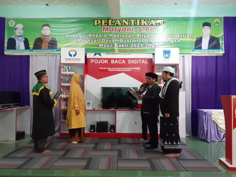 Alhamdulillah, kemarin, tepatnya hari Kamis, 21 Oktober 2021, dengan resmi saya melantik kepala Madrasah Aliyah (MA) Yayasan Dayah Bustanul Ulum Langsa yang baru, yakni; Maryani, S.Pd.