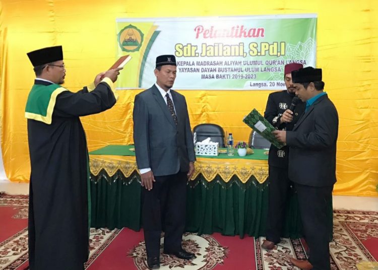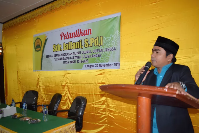 Kemarin, saya melantik ustazd Jailani, S.Pd.I sebagai kepala Madrasah Aliyah Ulumul Qur’an (MUQ) Yayasan Dayah Bustanul Ulum Langsa untuk periode 2019-2023